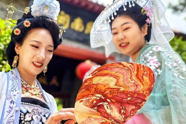 Traditional marbled Chinese fans are back in style this summer, blending practicality with artistic expression as they become fashionable accessories and unique souvenirs.
