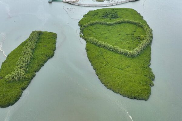 Xiamen’s Xiatanwei Mangrove Park showcases a successful ecological restoration, transforming the coastline into a thriving mangrove forest that protects against storms and fosters biodiversity.